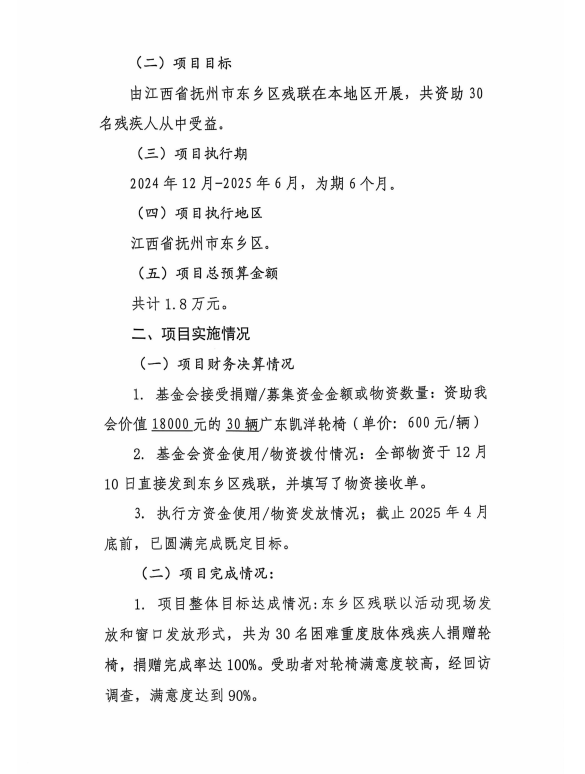 集善助残--江西省抚州市东乡区手动轮椅项目结项总结