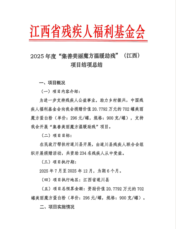 2025年度“集善美丽魔方温暖助残”(江西)项目结项总结